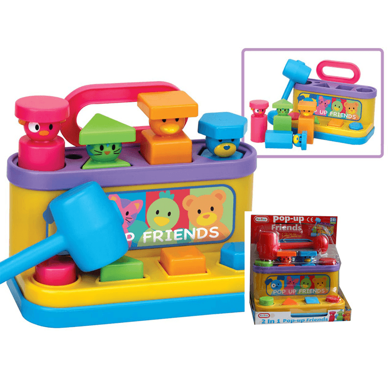 Multi coloured pop up friends with hammer.