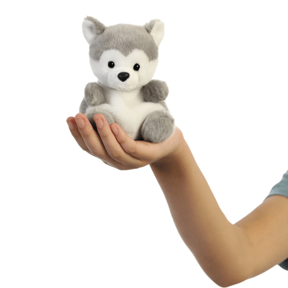 This little Husky dog fits in the palm of the hand, he is full of beans which makes him super soft and squishy. His coat is grey and white all over and he has a cute little button nose.