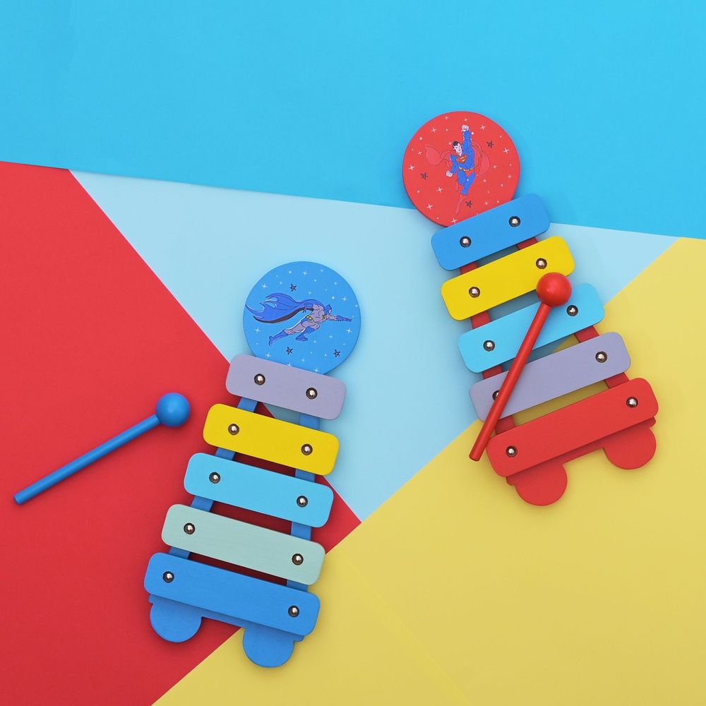 Unleash the musical talents of your young superheroes with the Warner Bros Superman Xylophone. This officially licensed wooden toy is the perfect gift for children who admire the legendary superhero, Superman. Crafted with vibrant colors and featuring Superman's iconic symbol, it invites children to explore the world of music in a fun and creative way.