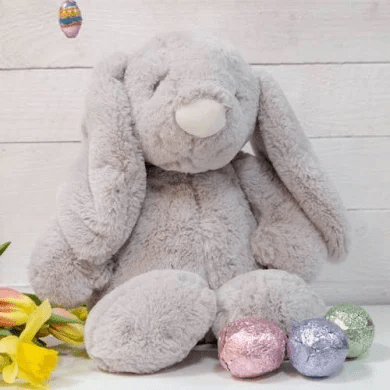 Give the precious new arrival a gift to be cherished and snuggled for a lifetime with this super-soft plush grey rabbit.
