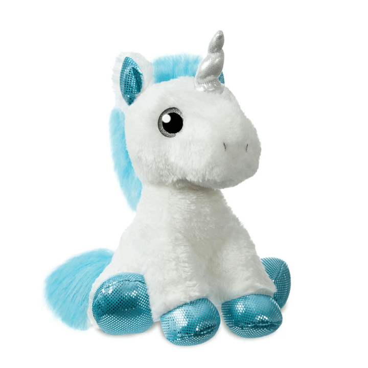 This Unicorn has a beautiful white body and blue mane which is super-soft and perfect for cuddles