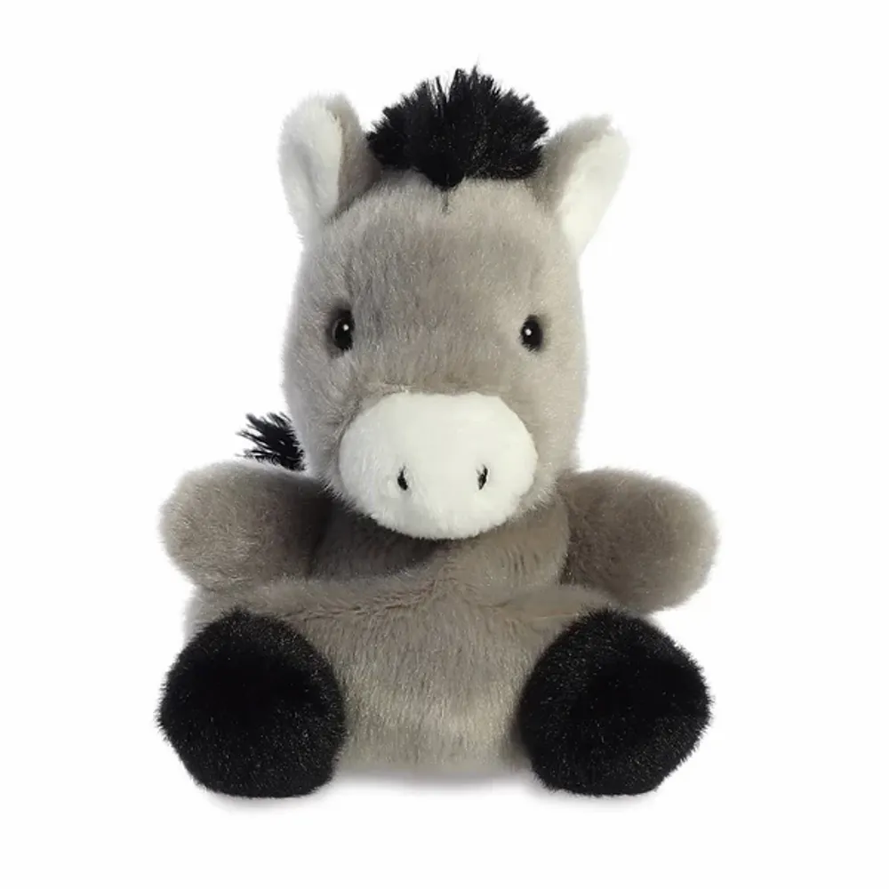 Introducing the Donkey Palm Pal, a charming addition to the Palm Pal range of collectable soft toys. This adorable 5-inch donkey is crafted from soft, plush material, ensuring a cuddly and comforting touch. Perfect for children and collectors alike, its endearing design captures the essence of a cute, friendly donkey.