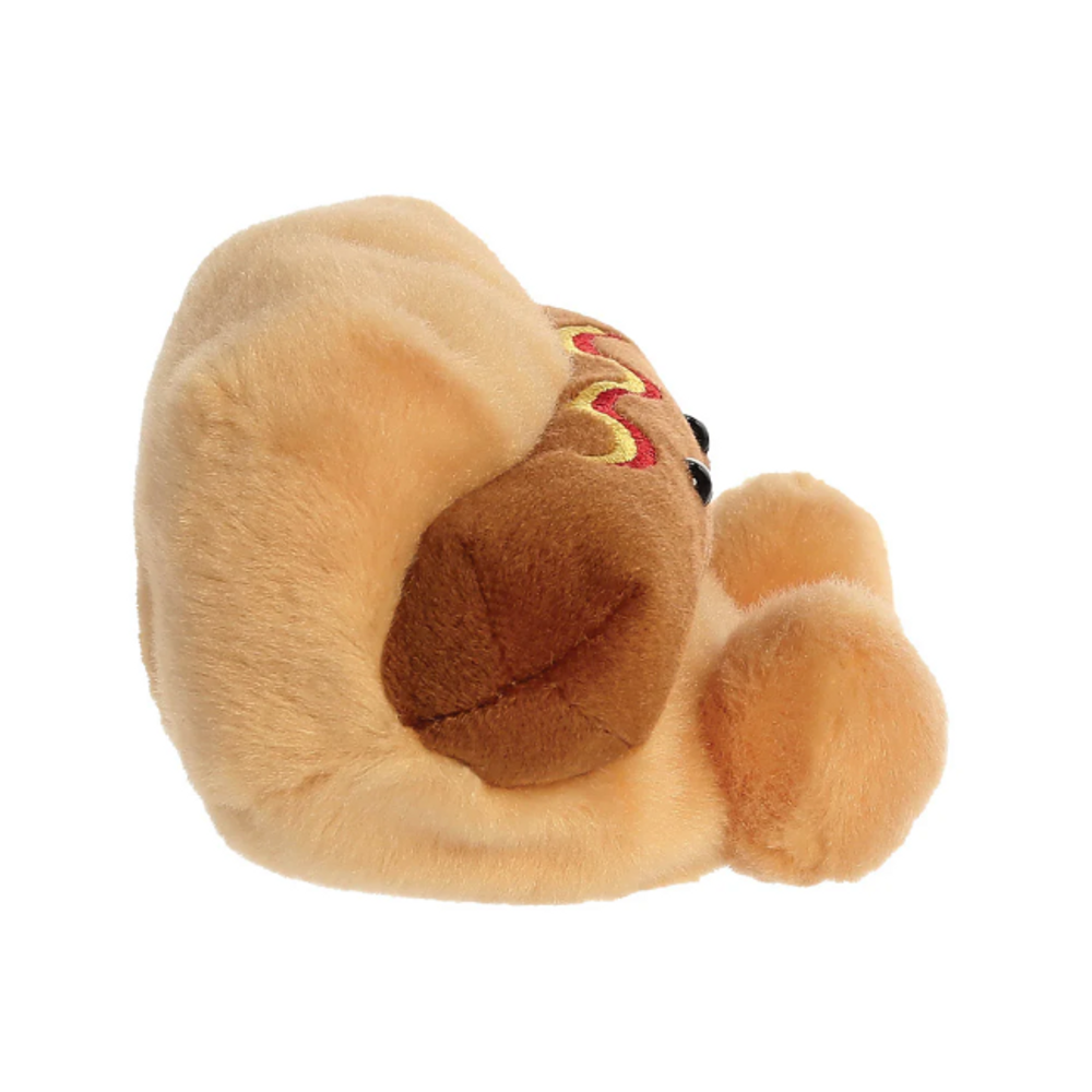 Meet the delightful Hot Dog Palm Pal, a charming little plush toy designed to be your whimsical companion.