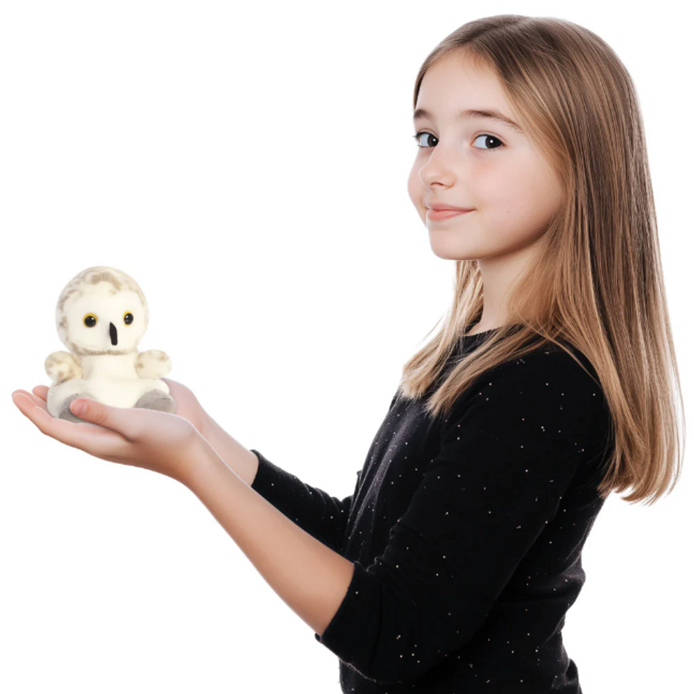 This adorable plush companion is perfect for owl lovers of all ages. Its soft and cuddly texture makes it an ideal cozy buddy, whether it’s for playtime or bedtime. The Palm Pal's petite size means it’s easy to take anywhere, ensuring that this charming snowy owl can accompany you on all your adventures. Detailed with big, expressive eyes and crafted to resemble the enchanting beauty of a real snowy owl, this plush toy serves as both a delightful collectible and a huggable comforting friend. Effortlessly complements any collection of plush toys or serves as a stand-alone statement piece for lovers of wildlife.