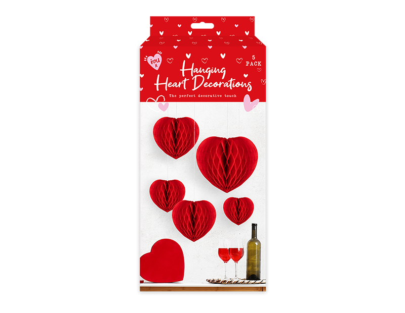 Add a festive touch to your Valentine’s Day celebrations with our Honeycomb Hanging Heart Decorations. This set includes 5 beautifully crafted heart-shaped decorations, each made from vibrant paper in a honeycomb design. The intricate texture and bold colours make these hearts a charming addition to any room, whether you're decorating for a party, surprise date, or a romantic dinner. Easy to hang and lightweight, they add a playful yet elegant vibe to your space. Perfect for creating a romantic atmosphere, these heart decorations will fill your home with love and joy, making every moment of Valentine’s Day extra special.