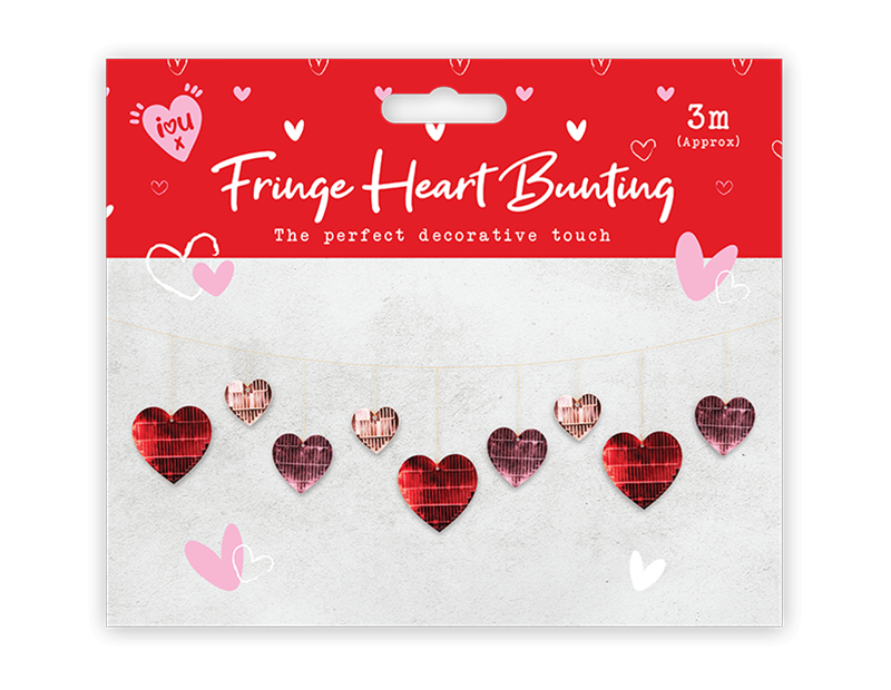Decorate your space with love using our Valentine’s Foil Heart Bunting. Measuring 3 meters long, this charming bunting features 12 shimmering foil hearts, each adorned with a stylish fringe pattern that adds movement and sparkle. Perfect for creating a romantic atmosphere, it’s ideal for Valentine’s Day parties, anniversaries, or any special occasion. The bright, metallic finish reflects light beautifully, adding a touch of elegance and fun to your celebrations. Easy to hang and lightweight, this heart bunting is a perfect way to spread love and joy, transforming any space into a festive and heartwarming setting.