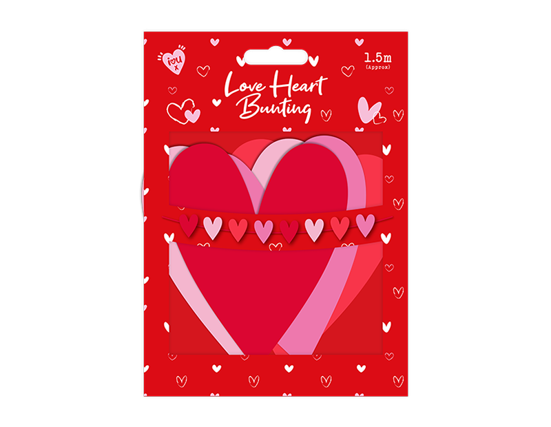 Celebrate love with our delightful Valentine’s Love Heart Bunting. Measuring 1.5 meters in length, this charming bunting features a series of vibrant, heart-shaped cutouts in a mix of red, pink, and white. Perfect for creating a romantic atmosphere, it’s an ideal decoration for Valentine’s Day parties, anniversaries, or intimate gatherings. The lightweight design makes it easy to hang across walls, windows, or mantelpieces, instantly adding a festive touch to any space. Whether you're decorating for a celebration or simply spreading love, this heart-shaped bunting is sure to make your Valentine’s Day extra special and full of cheer.