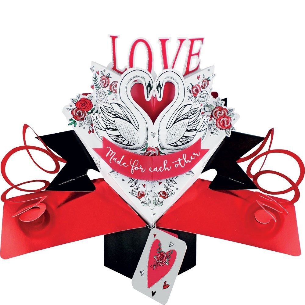 Cards are held together with elastic which triggers the Pop Up to open when removed from its envelope.
