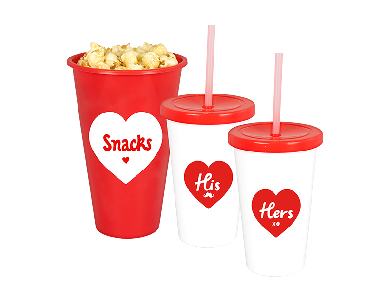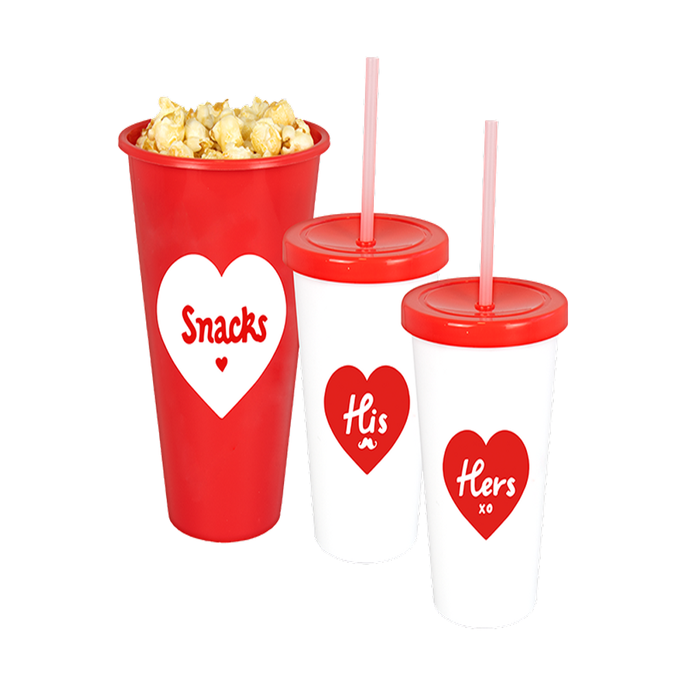 Each box contains 2 x cups with a straw & a popcorn holder.