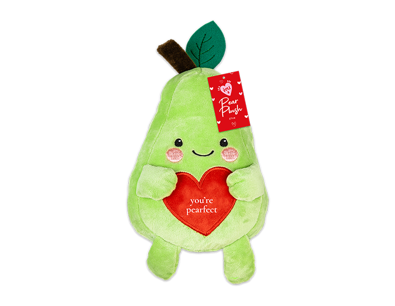 Bring a smile to your loved one’s face with our adorable Pear Love Heart Plush. Standing 27cm tall, this cuddly companion features a soft green body, an embroidered cheerful face with rosy pink cheeks, and a stitched heart on its belly that reads "You're Pearfect"—a sweet pun to show how much you care! Perfect for Valentine’s Day, anniversaries, or just because, this plush is a heartwarming gift that’s as unique as your special someone. Its huggable size and charming details make it a delightful addition to any room, spreading love and cheer with every glance.