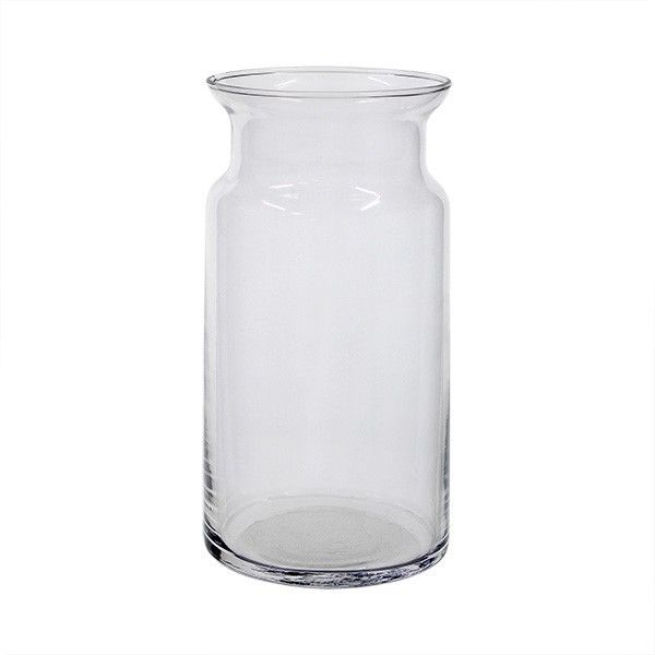 The Molly jar vase is clear and measures 20cm high by 10cm wide.
