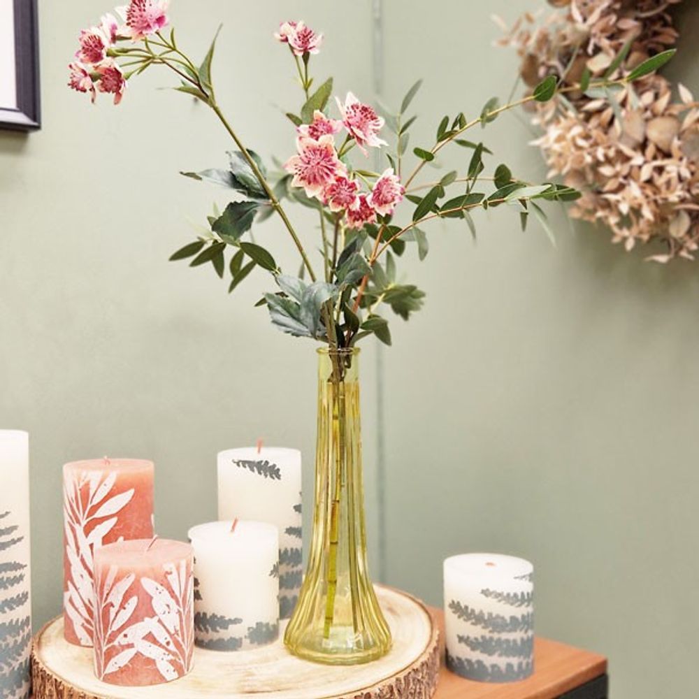 The Ashley bud glass vase is 21cm high by 8cm wide at the widest point.
