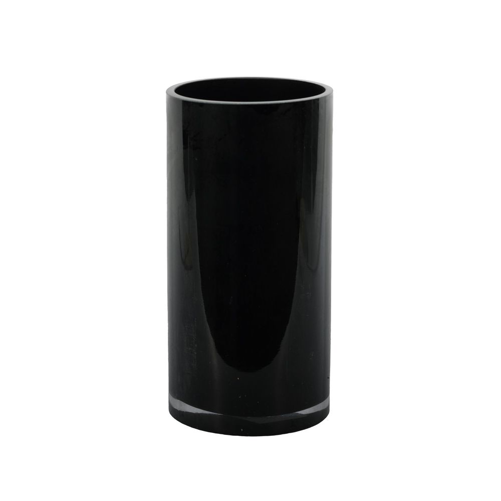 Stylish and contemporary black gloss cylinder glass vase that measures 20cm high by 10cm wide.