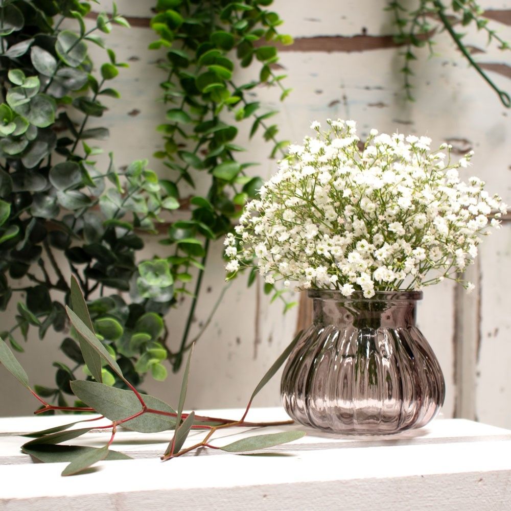 Ideal for displaying small flowers or dried arrangements, this onion-design jar vase has a ribbed texture.