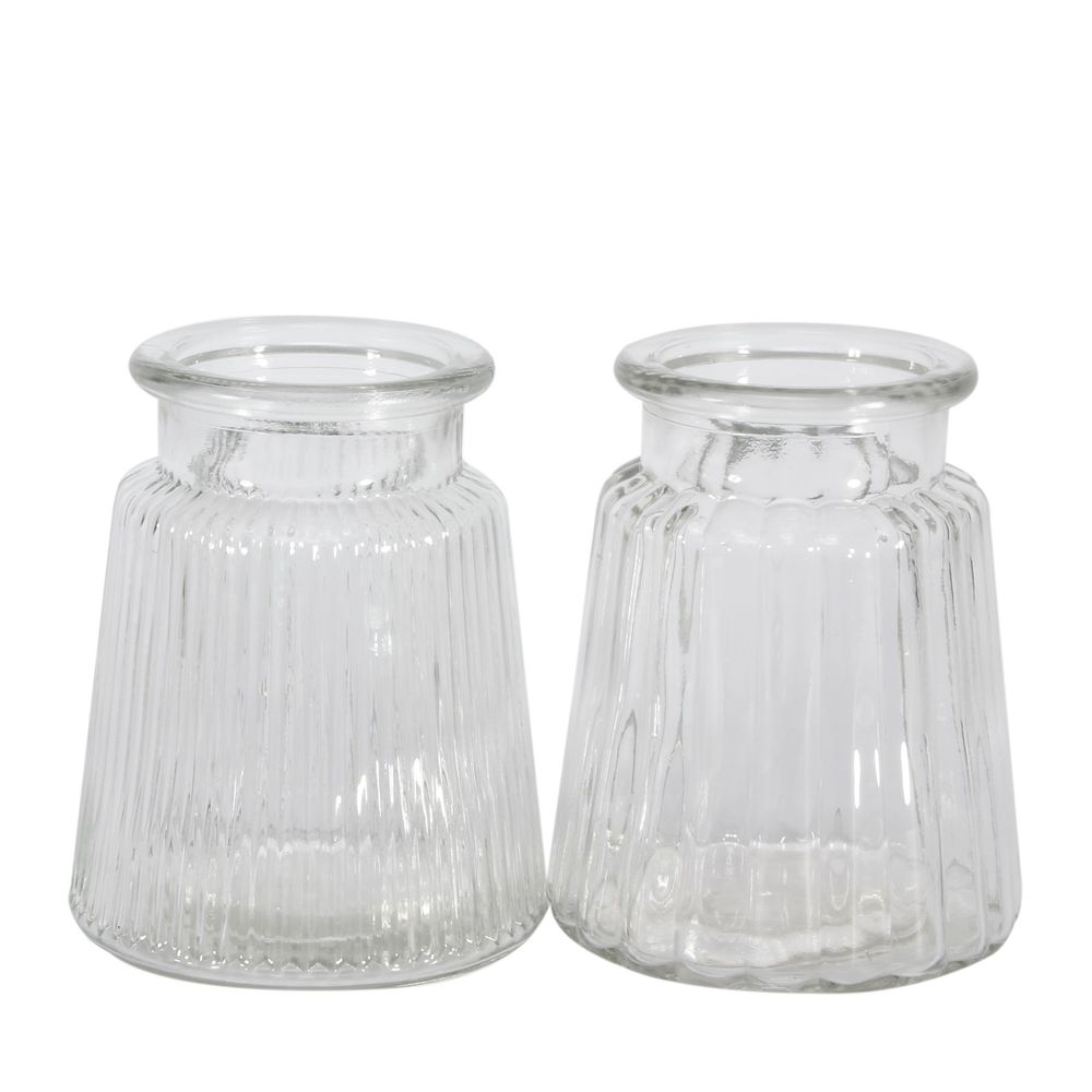 Ideal for displaying small flowers or dried arrangements, this vintage-style bottle vase has a pressed-glass style embossed finish.