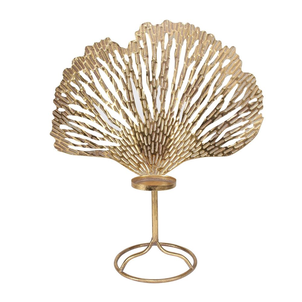 Lay the table with this beautiful golden Brocante Ginko candleholder. This style is suitable for all seasons, summer and winter. Style this gold with a contrasting navy blue theme for a wintery tone.
