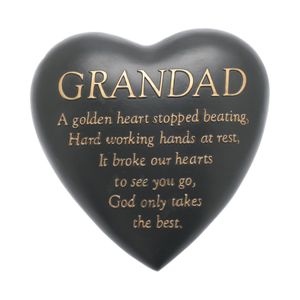 The polyresin heart shaped stone features a dark grey, smooth finish. It is completed by its ‘Grandad’ gold embossed decal with accompanying verse.