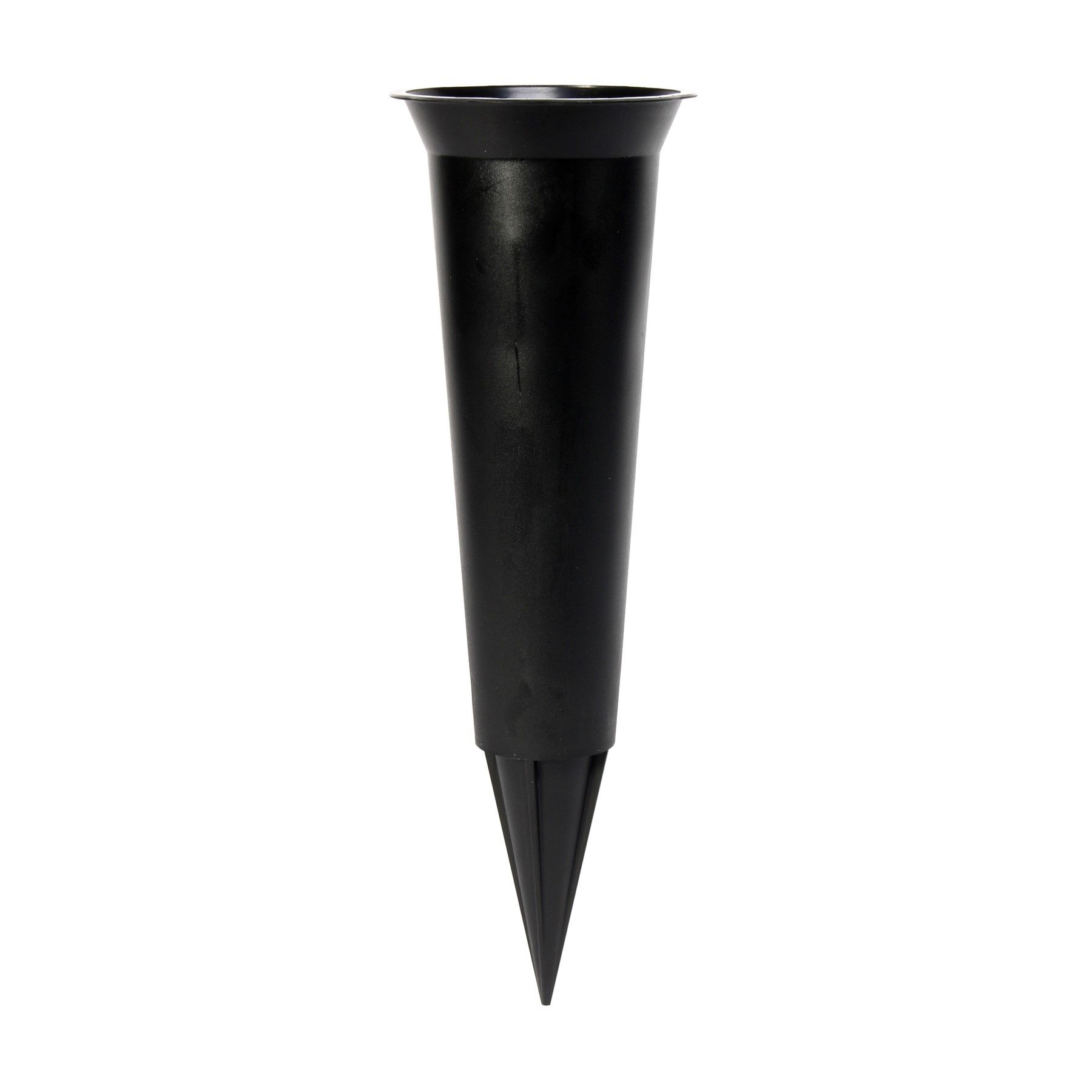 A black spiked grave vase, made from a high quality robust plastic to withstand the elements
