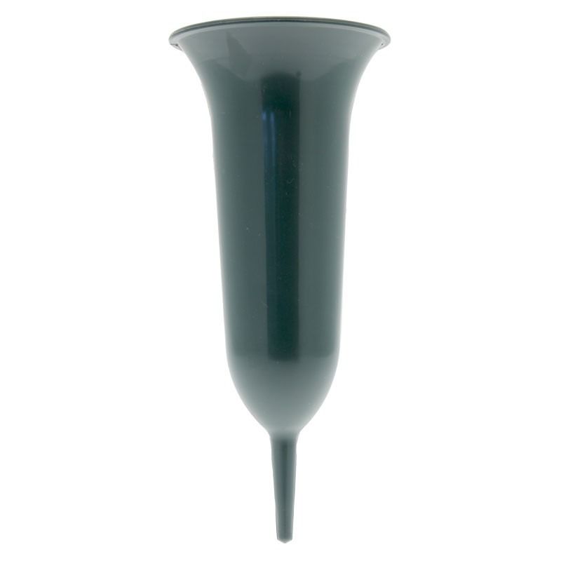A dark green spiked grave vase, made from a high quality robust plastic to withstand the elements