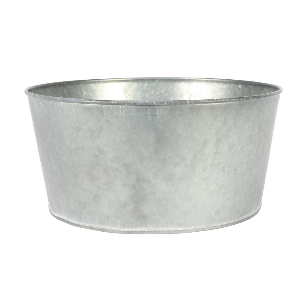 A classic zinc pot in a whitewash finish and featuring a roll-top and bottom.