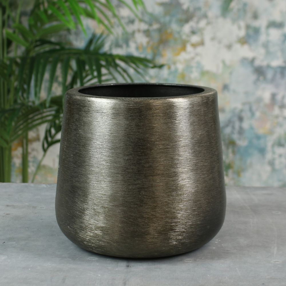 With a contemporary shape and a brushed metallic finish, this planter is the perfect way to add a little style to your houseplants.