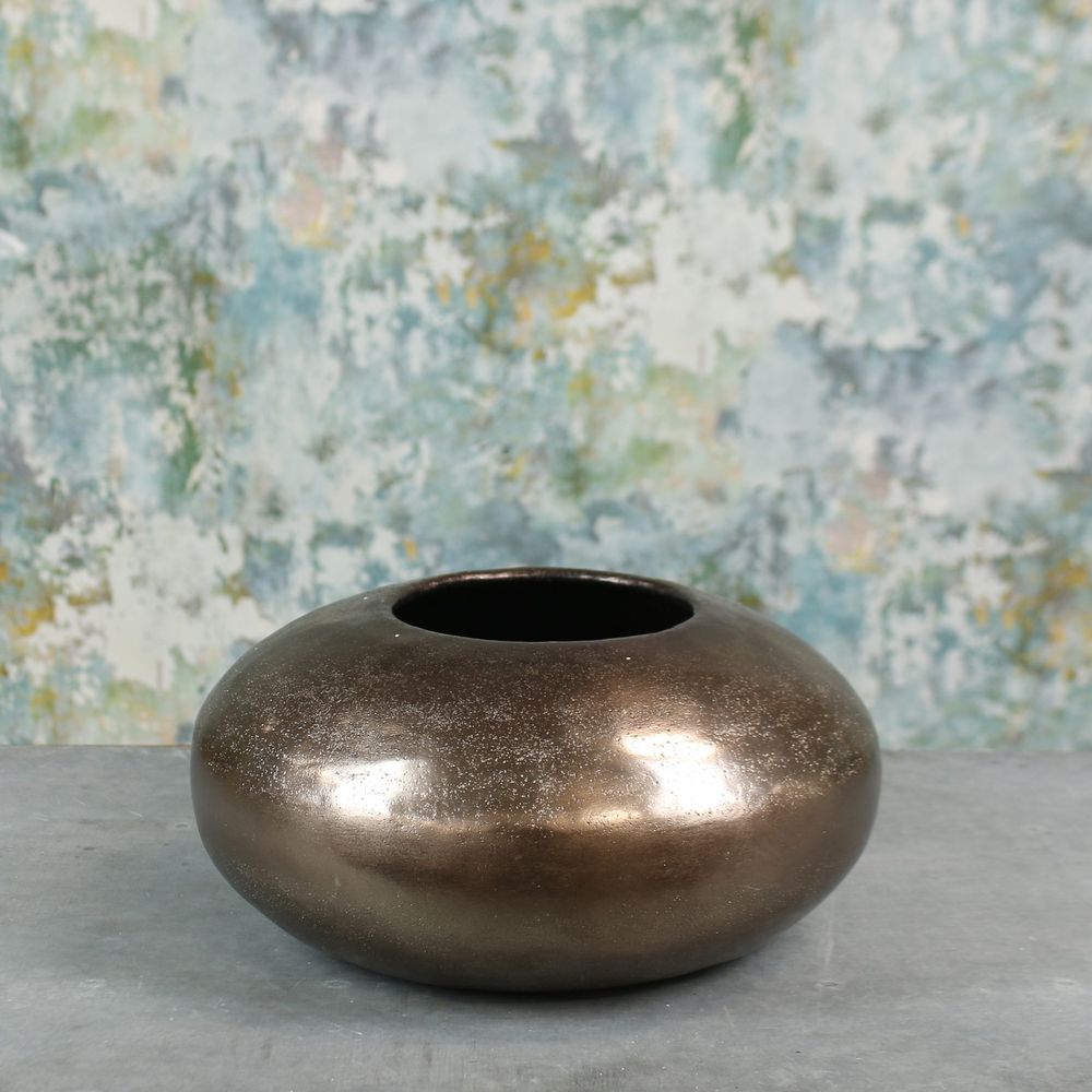 With its contemporary circular style and hammered metallic bronze finish, this pebble vase makes an ideal vessel for making a statement with your arrangements.