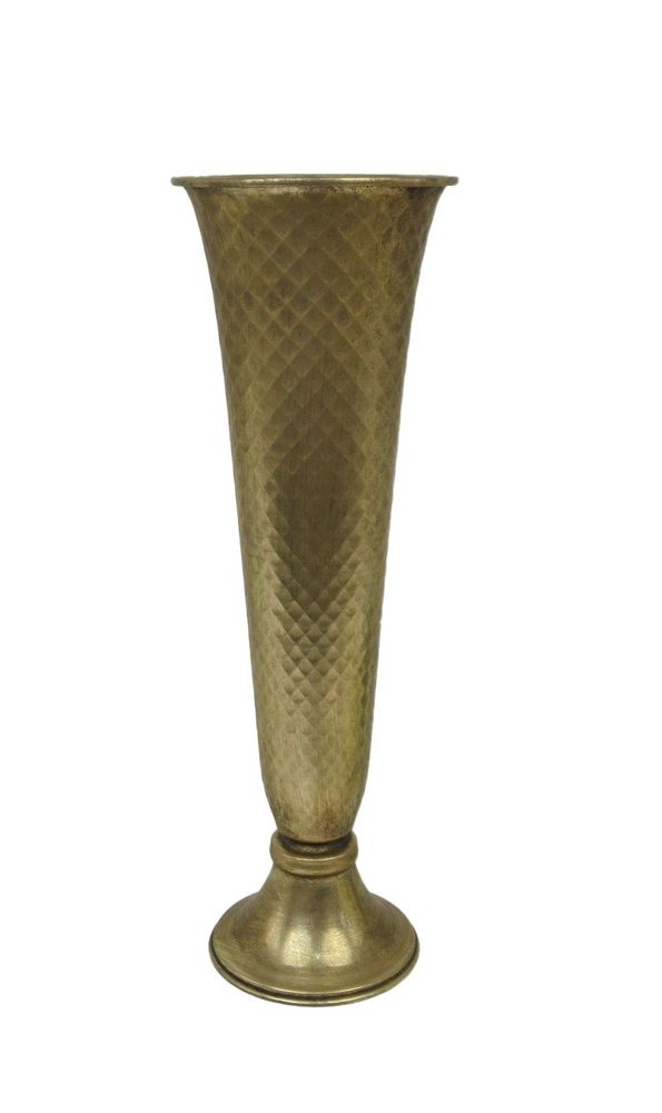 Elevate your home decor with our elegant antique gold metal Creation Table Centre Vase. Expertly crafted, this vase is designed to be the focal point of any table setting. Its diamond textured design make it the perfect fit for modern and classic interiors alike.