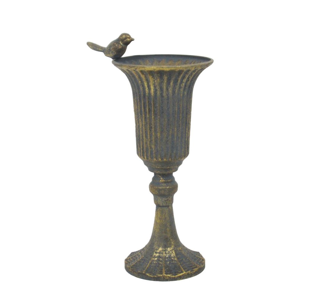 Antique Gold Creation Metal Urn Vase on Stem (30cm)