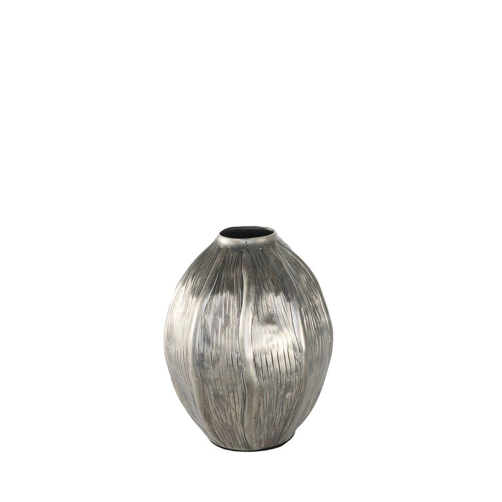 Revitalise your living space with the sophisticated charm of the Antique Silver Eros Seed Metal Vase. Its stunning antique silver finish exudes an aura of timeless elegance, perfectly accentuating any decor style from contemporary to classic. Crafted with precision, this vase features a unique seed-like texture that adds visual interest and a tactile experience. Ideal for use as a standalone statement piece or as part of a collection, the Eros Seed Vase brings a touch of artisan craftsmanship to your home. Perfect for showcasing dried flowers or adding a touch of luxury to your room, coffee table, or office desk, this vase offers versatility in every corner. Elevate your interior design with this exquisite piece that embodies sophistication and style.