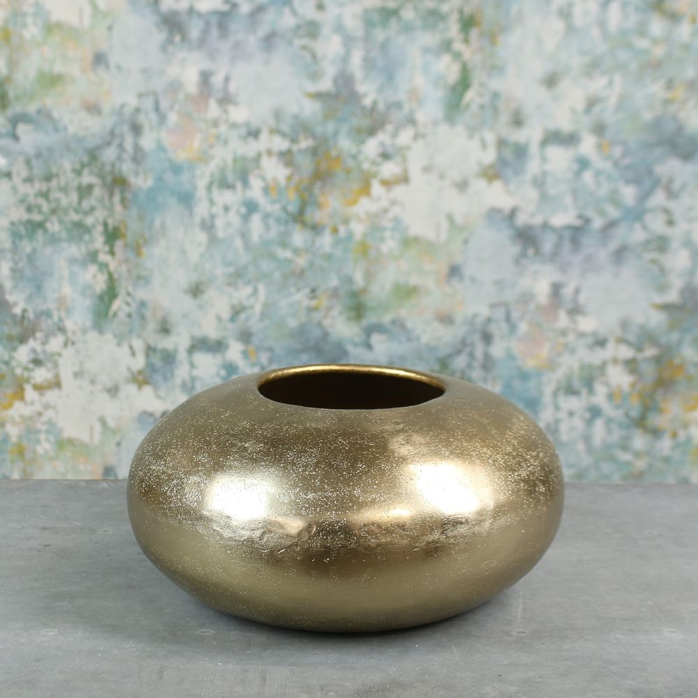 With its contemporary circular style and hammered metallic bronze finish, this pebble vase makes an ideal vessel for making a statement with your arrangements.