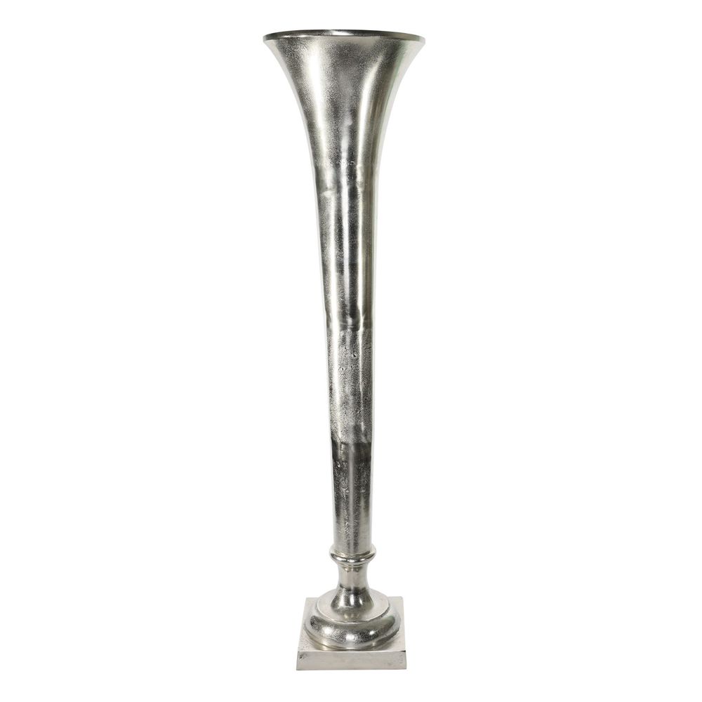 Ideal for showcasing long-stemmed flowers or as a standalone decorative element, this vase will catch the eye in any room, be it a grand hallway, a luxe living room, or a sophisticated dining area. Create a striking visual impact and a touch of luxury with the Silver Poseidon Trumpet Vase, perfect for home decorators seeking unique pieces.