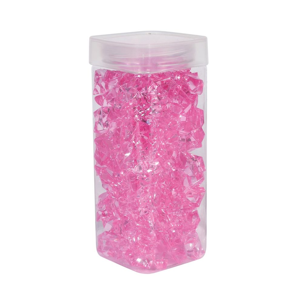These large pink acrylic stones are perfect decorative accents for your home or event. Weighing 300 grams, they add a touch of elegance and color to any setting. Ideal as vase fillers, these vibrant stones can beautifully complement floral arrangements or stand alone as eye-catching decor pieces. Their durable acrylic material ensures long-lasting shine and clarity, making them suitable for various creative projects. Whether used in centerpieces, table displays, or craft projects, these decorative stones bring a charming and luxurious feel to any space. Elevate your decor with these stunning pink acrylic stones.