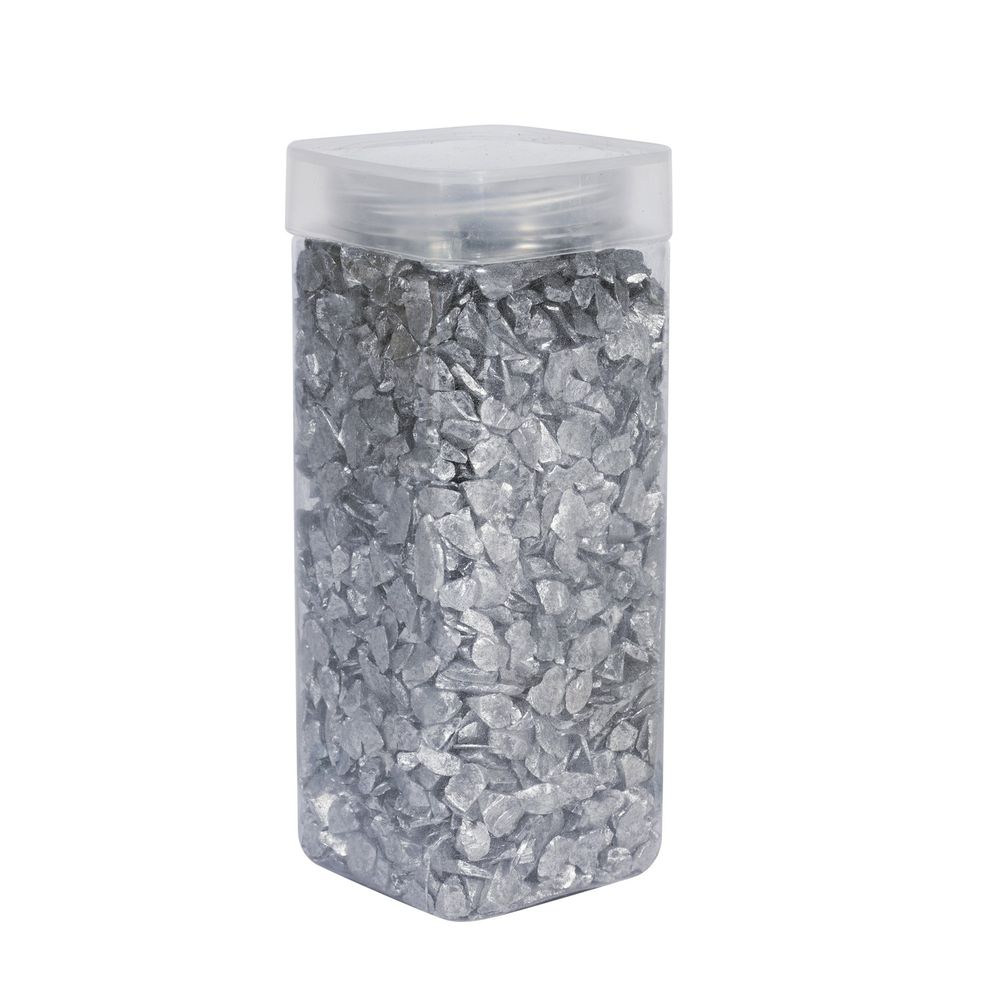 Introducing our 5-8mm Silver Glass Pebbles (750gr), the perfect addition to elevate your displays with a touch of sophistication. These exquisite silver glass pebbles are ideal as vase fillers, adding a shimmering elegance to any event decor. Ranging from 5-8mm, they are versatile for various decorative purposes, from weddings and parties to home decor.